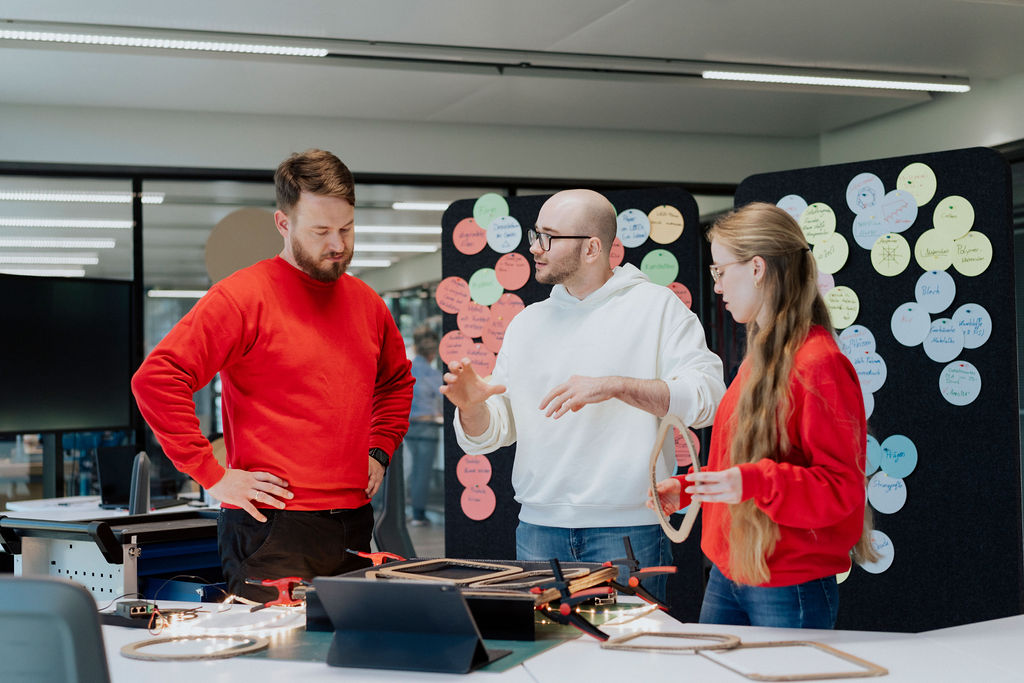 Benjamin: Die regelmäßigen Abstimmungen haben immer wieder neue Lösungsansätze hervorgebracht, sei es beim Kleben des Lux-Gewebes oder bei Konstruktionsarbeiten. Besonders wichtig fand ich den Abgleich der theoretischen und praktischen Sichtweisen beider Seiten für unser wissenschaftliches und strukturiertes Vorgehen: Sind wir noch auf dem richtigen Kurs und erfüllen die Aufgabenstellung?