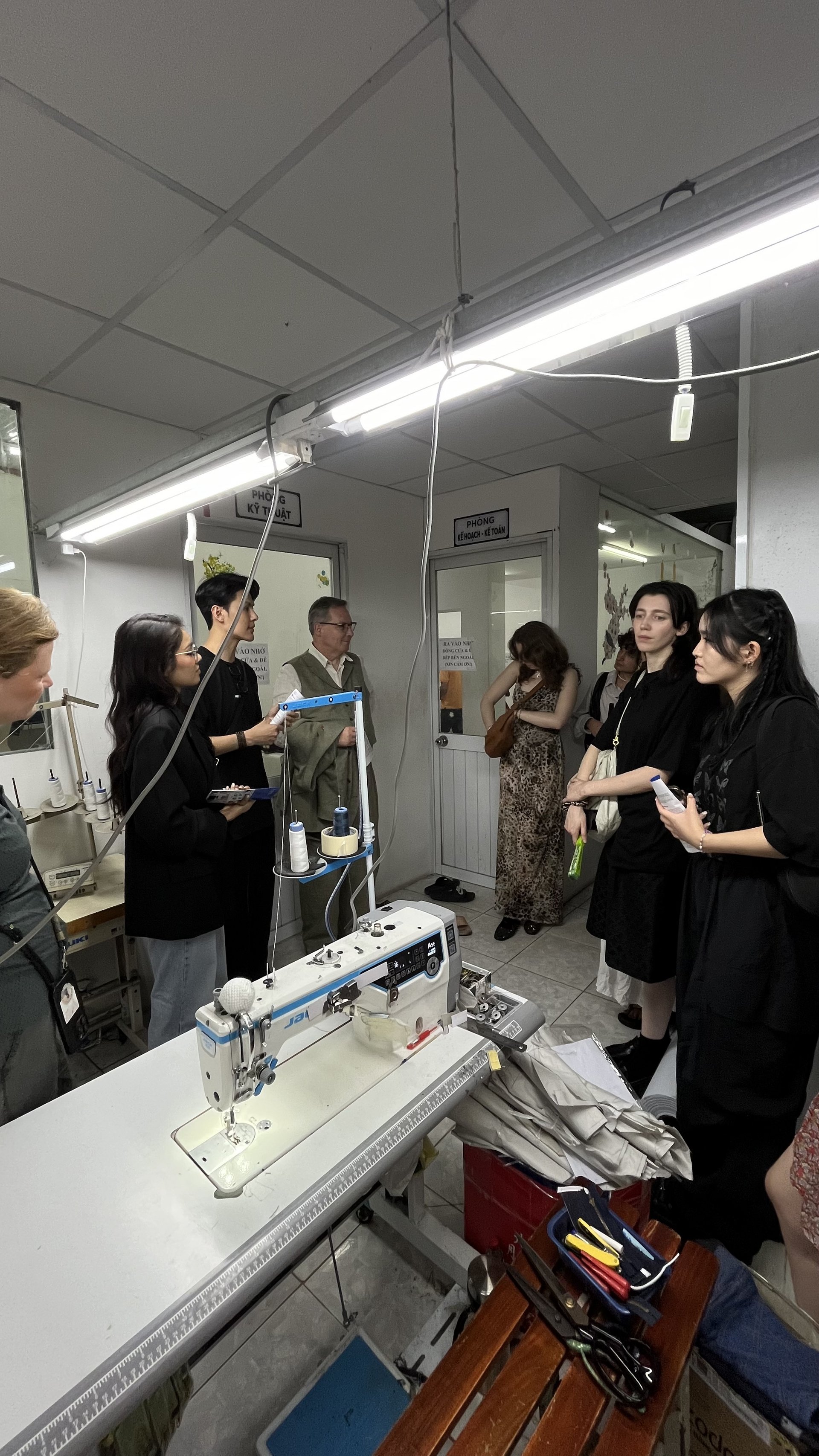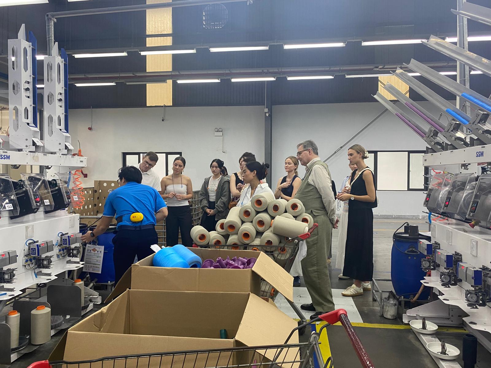 Der erste Teil unserer Exkursion führte uns nach Ho-Chi-Minh-Stadt, eine der wirtschaftlich bedeutendsten Metropolen Vietnams. Hier besuchten wir eine Vielzahl renommierter Unternehmen, darunter die Nameson Group, Mercedes, Apache (Sneakerproduzent für Adidas), verschiedene Denim-Konfektionäre sowie Daphale Studios, das von einer ehemaligen Absolventin unserer Hochschule gegründet wurde. Besonders aufschlussreich waren zudem unsere Besuche bei Lieferanten von Hunkemöller sowie an der RMIT University, einer der führenden Universitäten in der Region. In den Produktionsstätten erhielten wir detaillierte Einblicke in die verschiedenen Stufen der textilen Fertigung, von Strickereien über Spinnereien bis hin zu Färbereien. Der direkte Austausch mit Fachkräften vor Ort verdeutlichte die hohen Anforderungen an Qualität und Effizienz in der global vernetzten Modebranche.