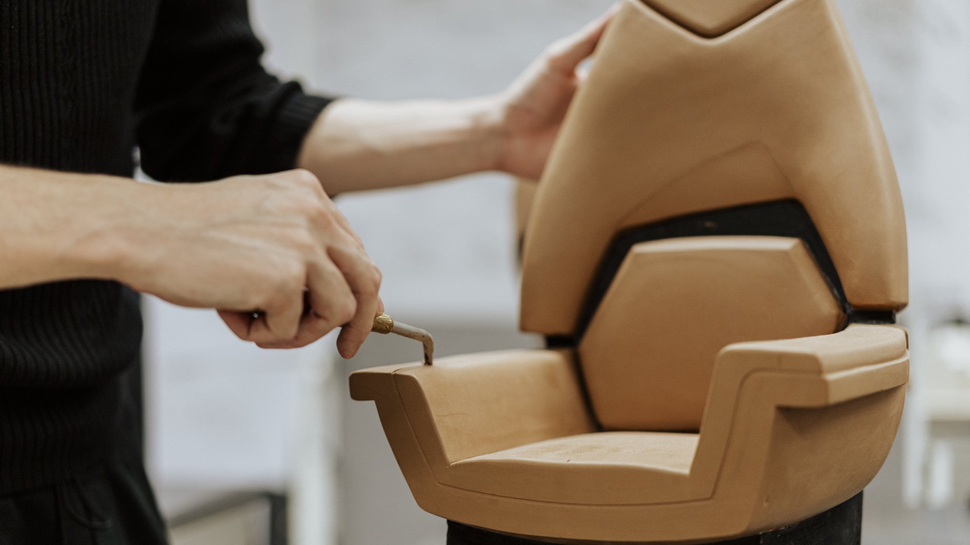 Das Labor hat neben der Monitorwand auch klassische Holzbearbeitungsmaschinen und spezielle Modelliertische. Die Studierenden erstellen Unterkonstruktionen aus Holz und PU-Schaum, auf die im Anschluss ein Industrieplastilin (Clay genannt) aufgetragen und mit Kratzern und Klingen bearbeitet wird. Die „Claymodelle“ sind sehr Kantenstabil und weisen eine sehr gute Oberflächenqualität auf, somit entstehen Modelle, die einem realen Autositz (als Beispiel) sehr gut darstellen können. Die Studierenden lernen dreidimensional zu Denken, am realen Objekt Formgefühl zu entwickeln und Gestaltungsideen zu überprüfen.