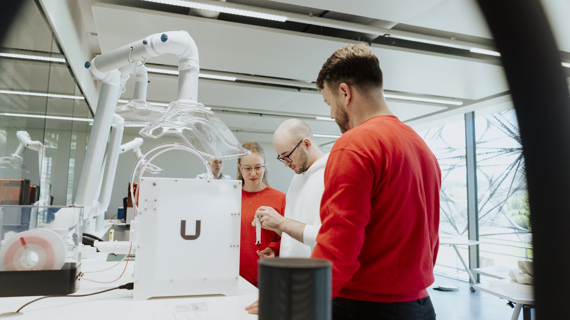…und im Kopf macht's KLiCK! Im Innovationszentrum TEXOVERSUM befindet sich KLiCKLAB, ein Arbeitsbereich für interdisziplinäre Produktentwicklung. Von der Konzeptentwicklung bis zur fertigen Funktionsmusterherstellung bietet KLiCKLAB die ideale Umgebung, um sich in den Schlüsselbereichen der Produktentwicklung zu engagieren und innovative Lösungen zu gestalten.