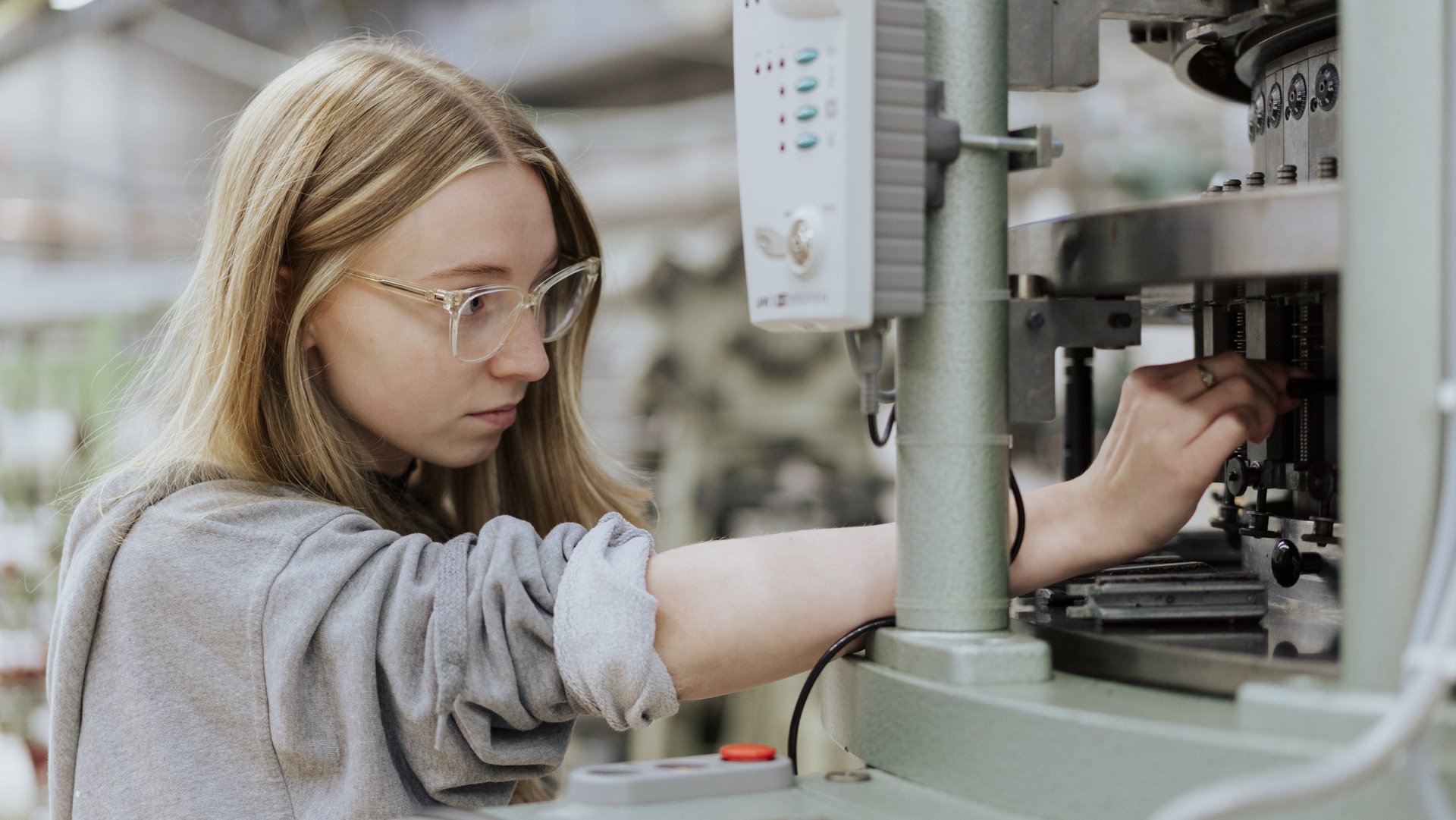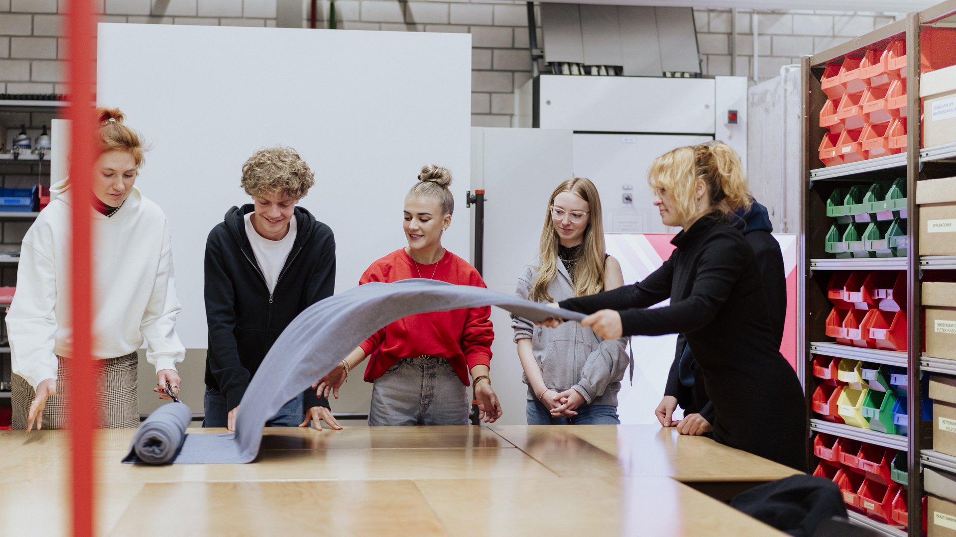 Die Grundlagen beginnen schon auf den Handflachstrickmaschinen, gehen über die mechanisch gesteuerte und enden bei den neusten elektronischen Maschinen, die uns von den Industriepartnern in großzügiger Weise zur Verfügung gestellt werden.